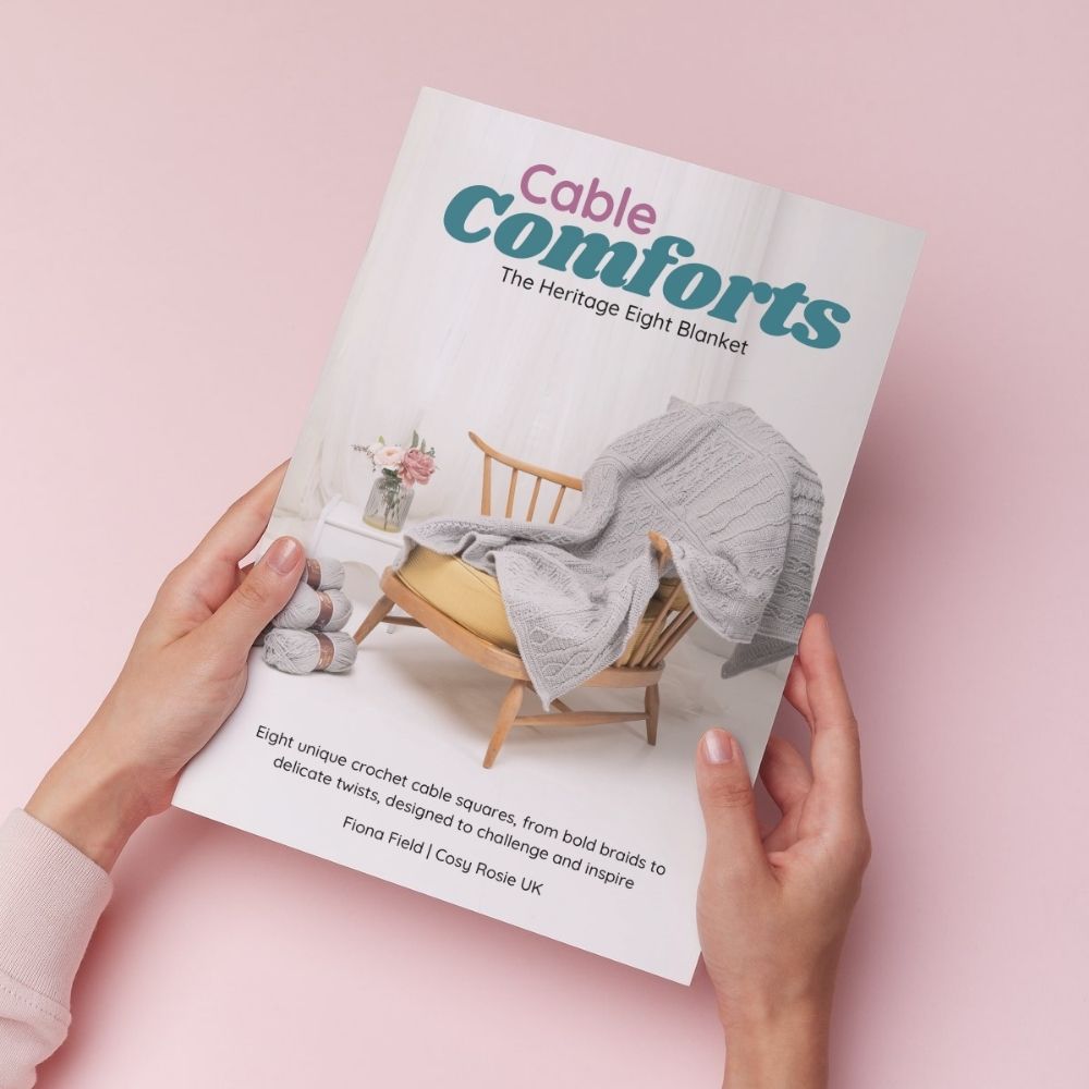 Cable Comforts: The Heritage Eight is a stunning crochet blanket pattern built from eight distinct cable squares - each one designed to highlight a different stitch motif, from elegant twists to bold braids.
