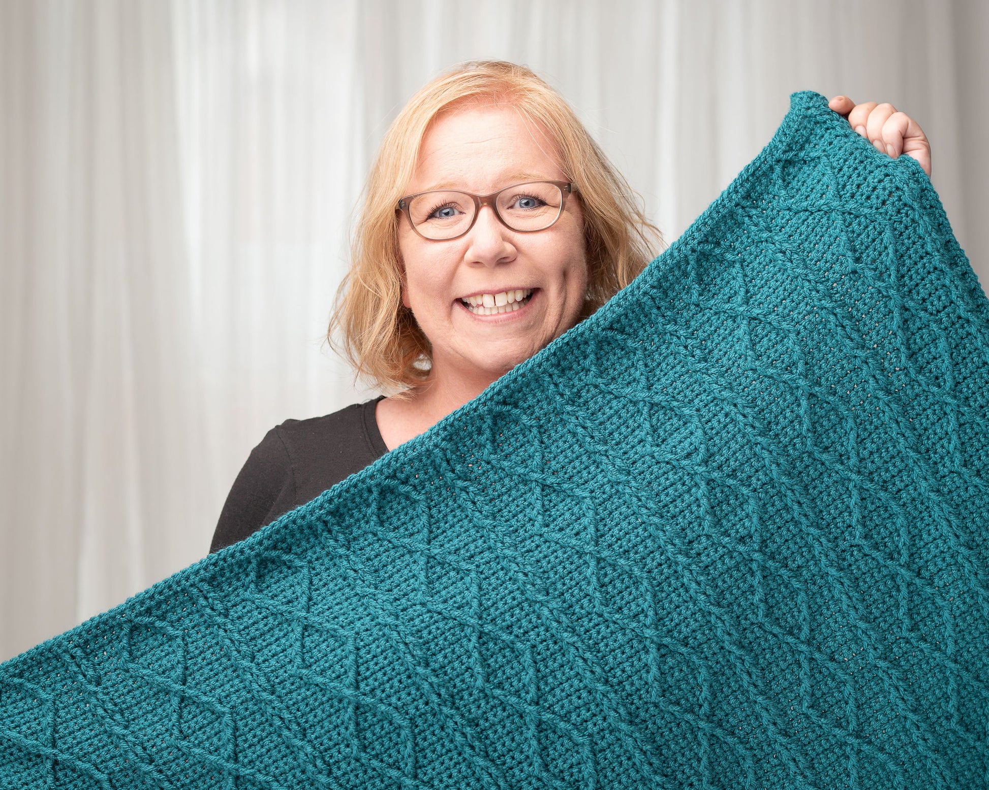 A richly textured crochet cable blanket made from 8 unique sampler squares. Includes charts, photo + video tutorials.